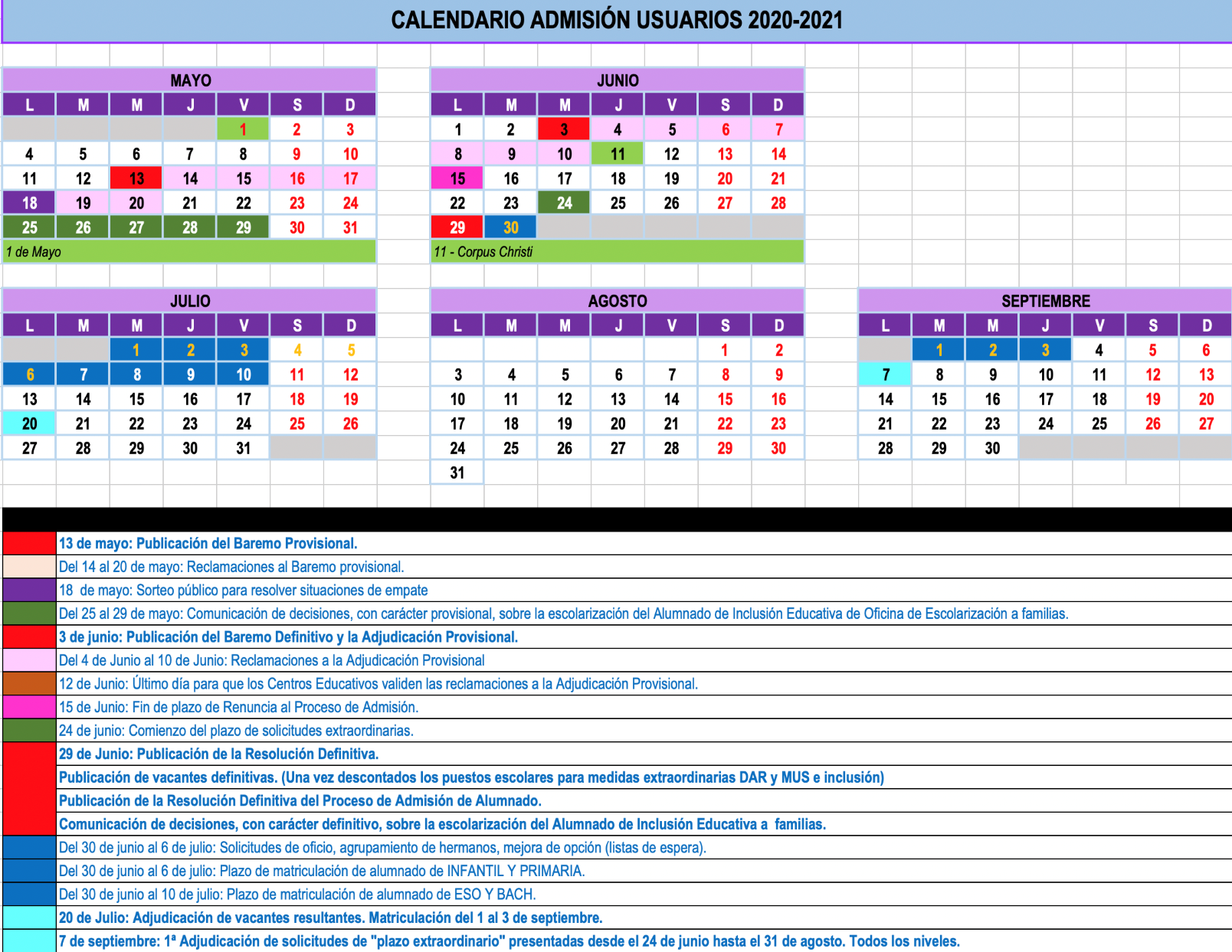 Este nuevo calendario se inicia con la publicación el miércoles, día 13 de mayo, del baremo provisional de solicitudes que participan en el proceso, siendo el plazo de reclamación del 14 al 20 de mayo, ambos incluidos